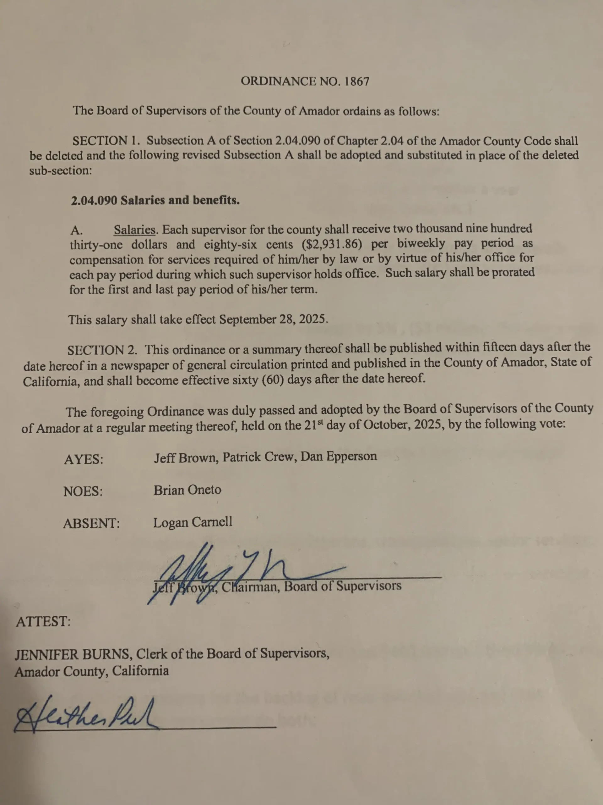 Paid for by “Oneto for Supervisor 2026” FPPC#1489606 PO Box 95 Drytown, CA 95699